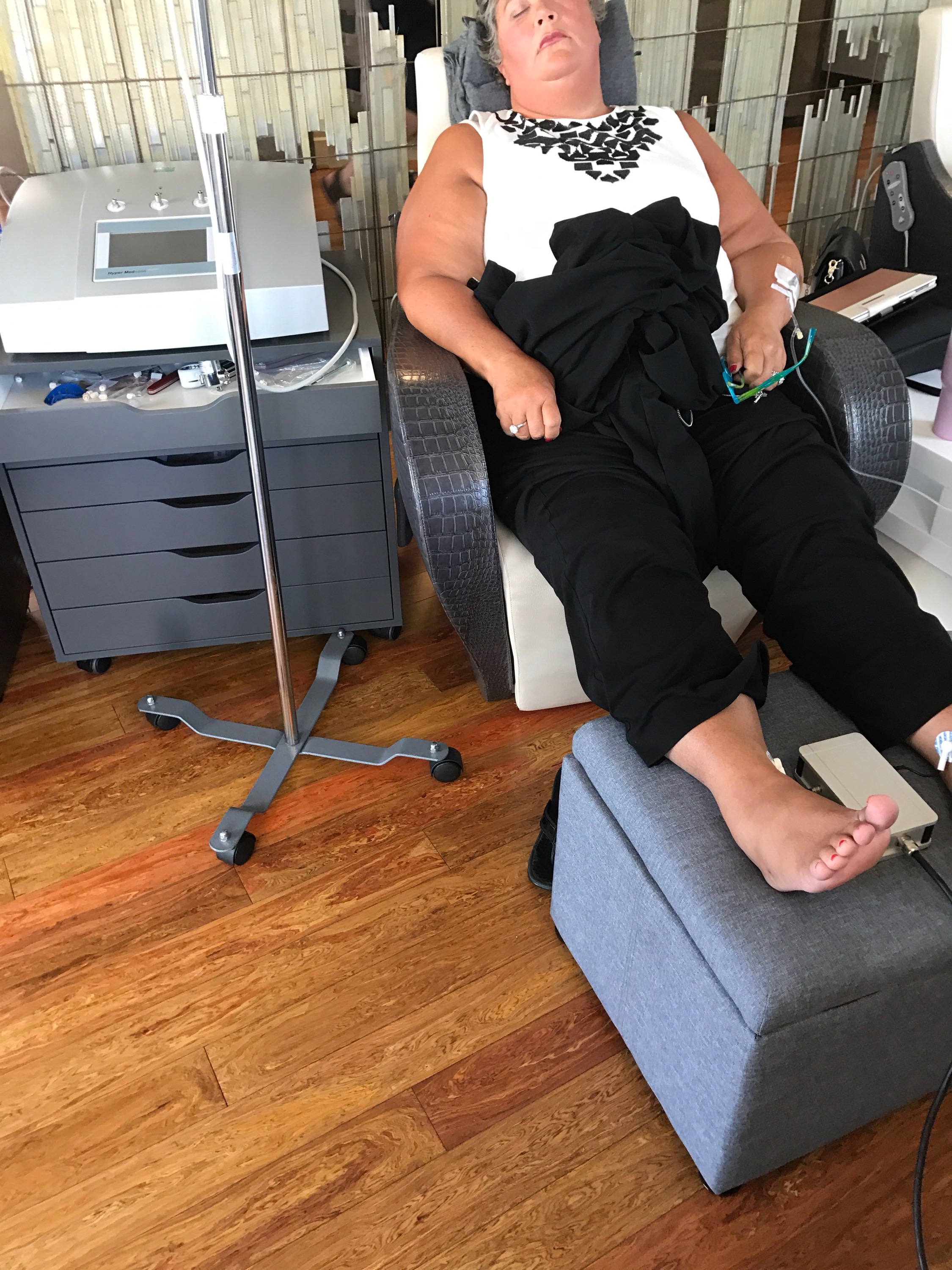 Everything went smoothly until that idiot Dr Robert Rey got there. Dr 90210 is a complete ass! He is loud and thinks the world revolves around him. He was on a FaceTime call with a patient and walked into the middle of our “serene” penthouse and was yelling and laughing so loud everyone was staring at him which I guess is what he was striving for. I took it as long as I could and at the moment I got nauseous from my medicine, I walked up to his nurse and said this is supposed to be a serene and relaxing setting. Can you tell him to shut up? I thought her well done chin was going to hit the floor but she told him to tone it down. Later I went to the bathroom and he was standing on one side of the small hall, leaning back with his feet stuck out. Some woman was standing opposite him in the same position. I politely said excuse me and neither moved. I YELLED EXCUSE ME and ran over their feet with my pole. He looked stunned. I laughed. 😂🤣 All the nurses were giggling.