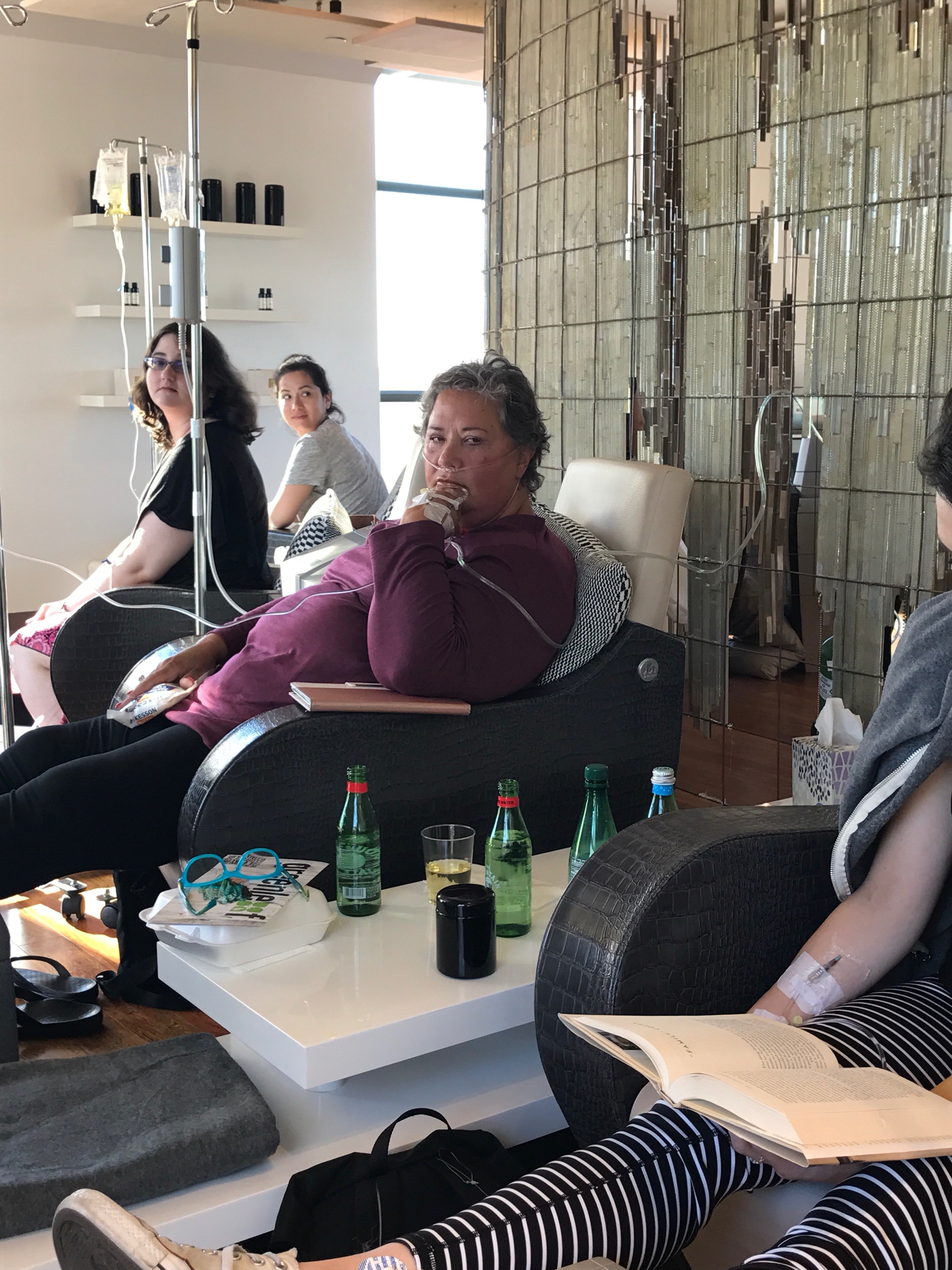 My IV that has remained in my hand since Monday was having a hard time with my IVs. I wound up being at the clinic until 8pm, had an interesting Uber ride home with a VERY talkative Indonesian driver, drank one martini at the bar, then crashed in my room.